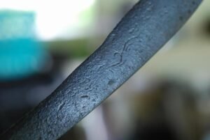 มีเรื่องกล่าวขานกันว่าเนื้อเหล็กที่หลวงพ่อเดิมนำมาใช้ตีเป็นมีดนั้นจะมีส่วน ผสมของตะปูสังขวานร ซึ่งเป็นตะปูในสมัยโบราณที่ใช้ยึดเครื่องไม้ในพระอุโบสถแทนตะปู ตะปูโลงผีที่สัปเหร่อเผาแล้วเก็บไว้ บาตรแตกชำรุด และเหล็กน้ำพี้ นำมาเป็นส่วนผสมใช้ทำ มีดหมอ สำหรับช่างที่ตี มีดหมอของหลวงพ่อเดิม นั้นเท่าที่พบจะเป็นฝีมือช่างฉิม ช่างไข่ และช่างสอน ซึ่งแต่ละช่างจะมีเอกลักษณ์ของตัวมีดของตนเองต่างกันไป เมื่อช่างทำใบมีดเสร็จแล้ว ก็จะส่งต่อให้ช่างทำด้ามและฝักทำต่อ ส่วนที่เป็นตัวด้าม ถ้าเป็นมีดเล่มใหญ่จะมีด้ามเป็นงา และฝักเป็นไม้คูน ส่วนเล่มเล็กก็จะมีด้ามเป็นงาและฝักเป็นงา จากนั้นก็ส่งต่อไปให้ช่างทำเงินทำที่รัดปลอกมีดและด้ามมีด ช่างจะทำเงิน ทองหรือนากตามที่กำหนด โดยส่วนมากจะเป็นเงินเพียงอย่างเดียว เมื่อทุกอย่างเสร็จก็จะนำมาประกอบที่วัดหนองโพ โดยหลวงพ่อเดิมจะทำผงอิทธิเจไว้ให้ ผสมกับเส้นเกศาของหลวงพ่อที่ปลงในวันขึ้น 15 ค่ำ และแผ่นตะกรุด ซึ่งเป็นเงิน ทอง นาก เป็นแผ่นเล็กๆ ลงอักขระ ตัดพอดีกับตัวกั้นของมีด บรรจุลงไปในด้ามมีดอุดด้วยครั่งจนแน่น หลังจากนั้นหลวงพ่อเดิม จึงนำมีดหมอไปปลุกเสกอีกทีหนึ่ง