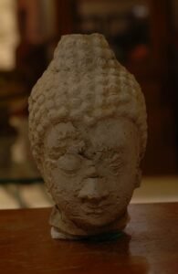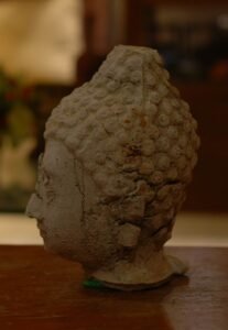 จำลองจากพระพุทธรูปปูนปั้น เพื่อการศึกษาทางโบราณคดี สมัยสุโขทัย ที่พบบริเวณโบราณสถาน ศรีสัชนาลัย ตั้งแต่คราวบูรณะ เมืองเก่าศรีสัชนาลัย กว่า 30 ปีมาแล้ว ขนาดเท่าองค์จริง